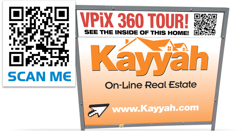 Now it's simpler and a whole lot less money to market and sell your own home on-line. Work with a local real estate attorney or find a discount real estate agent. You'll find plenty of them on Kayyah that are happy to work with you for a flat rate commission. We offer Kayyah Yard signs and the popular VPiX® QR Code. It let's prospects see the inside of your home in 360° with their iPhone.